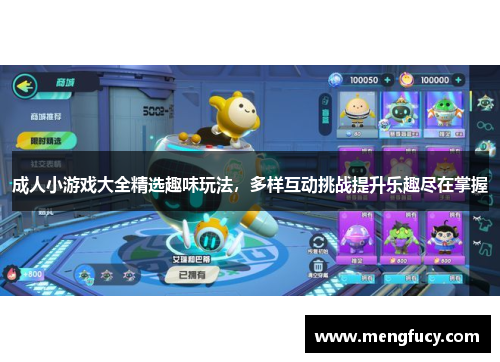立即咨询在现代社会中,成人小游戏作为一种轻松、有趣的娱乐方式,逐渐受到广大成年人群体的青睐。这些小游戏不仅能够帮助缓解生活压力,还能通过多样的互动和挑战提升游戏的乐趣。本文将重点介绍成人小游戏的趣味玩法、互动挑战以及如何通过这些元素让游戏体验更加丰富。首先,文章将从成人小游戏的趣味玩法出发,探讨其游戏内容的多样性和创意性;接着分析成人小游戏的互动性,如何通过合作与竞争的方式增强玩家之间的互动与沟通;随后,文章将深入讨论成人小游戏中的挑战机制,如何通过不同层次的挑战提高游戏的趣味性和参与感;最后,文章会总结成人小游戏的各类玩法如何通过综合运用提升玩家的整体娱乐体验,打造多维度的游戏乐趣。